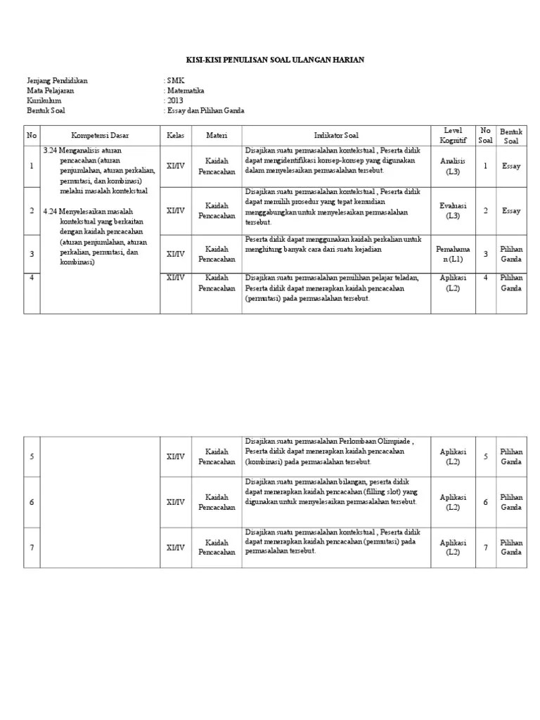 Materi, soal dan pembahasan kombinasi + soal . Contoh soal penggunaan aturan perkalian : Budi mempunyai 3 buah baju berwarna putih, cokelat, dan batik. Ia juga memiliki 2 buah celana . Matematika dasar aturan perkalian, permutasi dan kombinasi (*soal dari berbagai sumber).